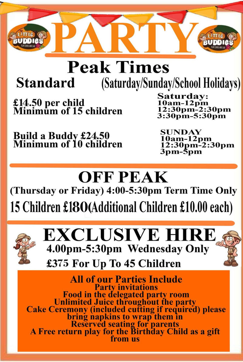PLEASE NOTE - Little Buddies no longer have a height restriction and all children under the age of 16 are welcome to play when accompanying younger siblings. ALL children must be accompanied by a RESPONSIBLE ADULT over the age of 18